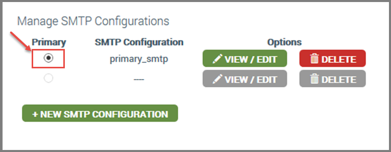 - Under Primary on the SMTP Settings tab, click the SMTP configurations you wish to delete, as shown below.