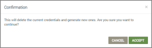 - Click ACCEPT in the Confirmation dialog box, which gives you an option to cancel without making any changes. When you accept, the current credentials are canceled, and a new set of credentials are created.